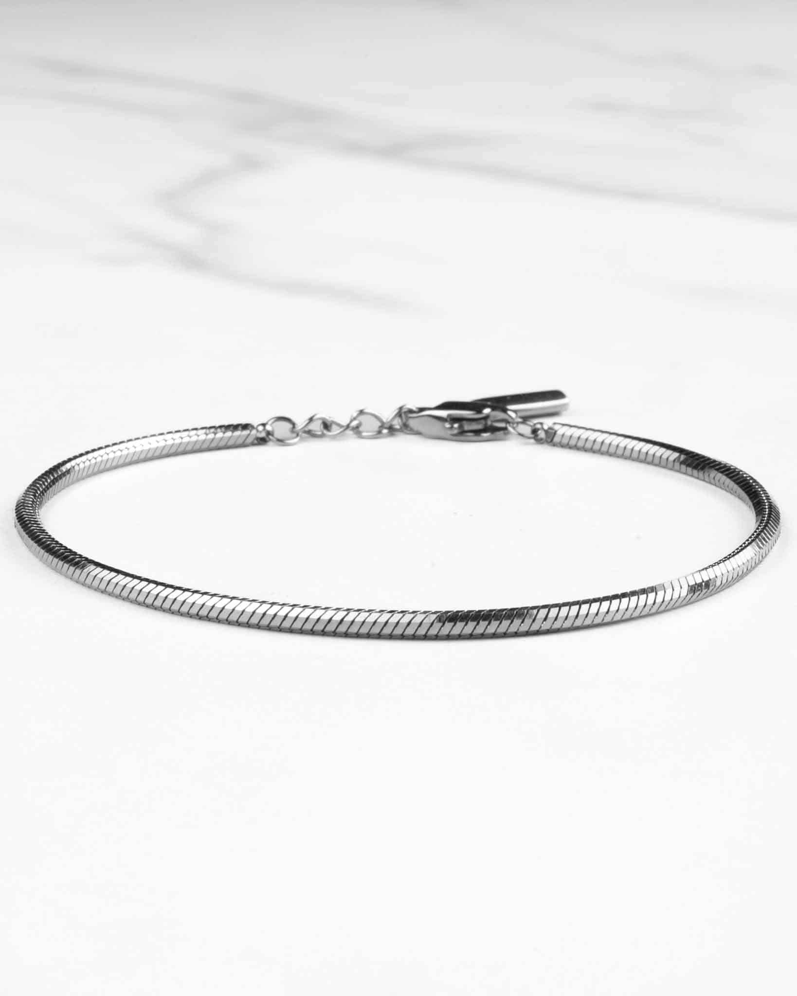 Hebi armband silver är ett stilrent och trendigt smycke med en subtil snake-design som följer en stark internationell smyckestrend. Med sin nätta bredd på 1.8 mm ger armbandet ett diskret men tydligt uttryck som passar både vardag och fest. Dess följsamma form gör det dessutom bekvämt att bära hela dagen.